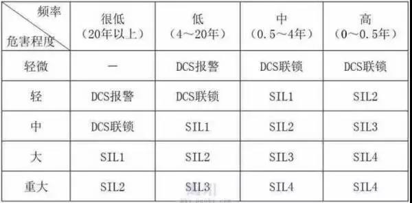 安全完整性等級(jí)可分為4個(gè)等級(jí),SIL4是安全完整性最高的等級(jí)(平均概率最高),SIL1是最低等級(jí);安全完整性等級(jí)越高,應(yīng)執(zhí)行所要求的安全功能的概率也越高;根據(jù)安全相關(guān)系統(tǒng)使用方式,要求發(fā)生的頻率可分為低要求操作模式(<=1次/年)和高要求或連續(xù)操作模式(>1次/年)。