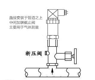 1.壓力變送器直接安裝于管道之上,中間加裝截止閥,主要用于氣體測(cè)量。