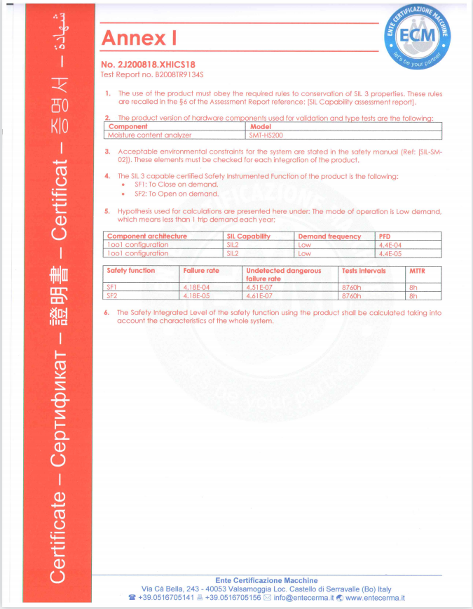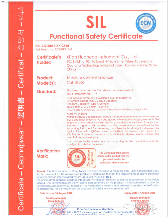 壓力/差壓/液位變送器SIL2(SIL3)認(rèn)證證書