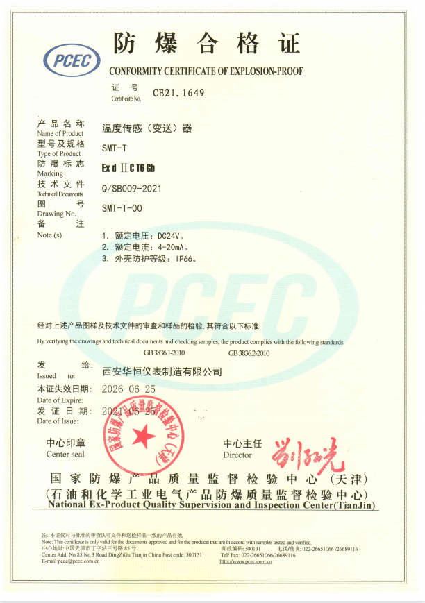 溫度傳感(變送)器防爆證書